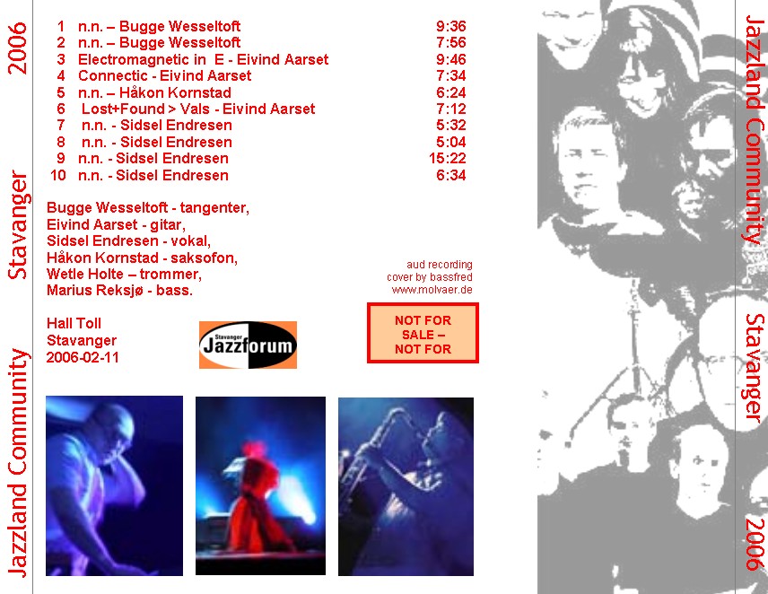| 2006-02-11 | NOR | Stavanger | Jazzforum (Jazzland Community Tour) | 0:47 | 1 cd | aud | LINK | LINK | |||