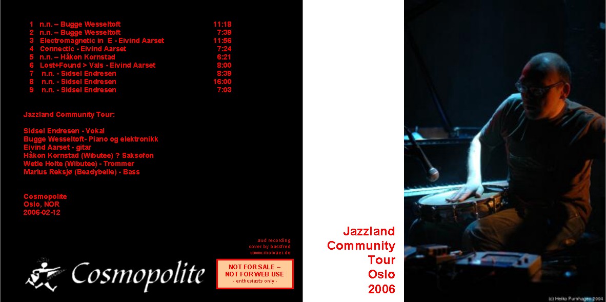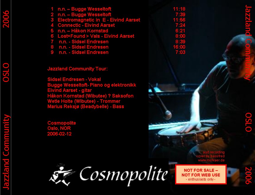 | 2006-02-12 | NOR | Oslo | Cosmopolite (Jazzland Community Tour) | 1 cd | aud | LINK | LINK | ||||
