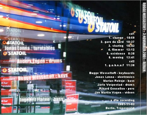 | 2006-01-20 | NOR | Oslo | Bugge's Room (A.Kleive,C.Wallumrød,Bugge) | 3 | 0:47 | 1 cd | web | A- | |||