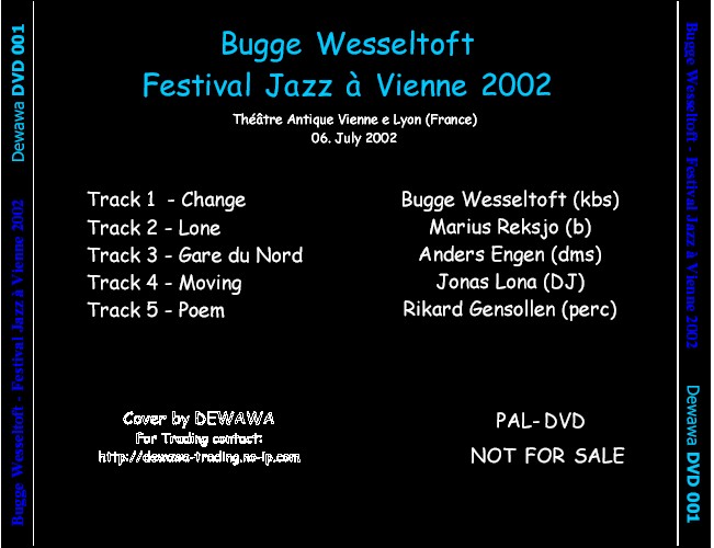 | 2002-07-06 | FRA | Vienne | Jazz à Vienne | 5 | 0:47 | 1 cd | fm | A | LINK | LINK | |
