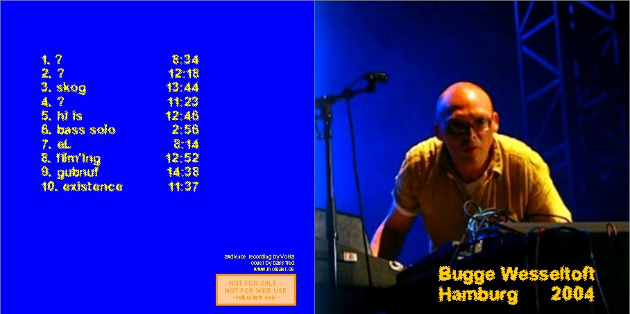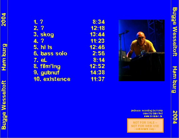 | 2005-01-15 | NOR | Bergen | Stå opp Jazz @ Blå Club (Bugge Solo) | 7 | 1:08 | 1 cd | aud | A | LINK | LINK | |